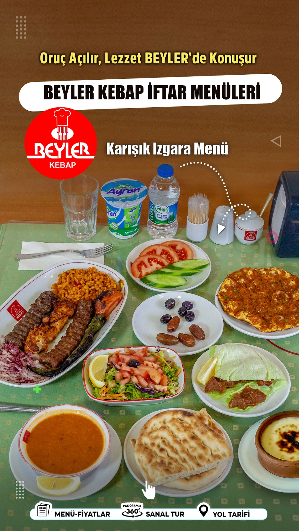 Beyler Kebap iftar menüsü Osmangazi Orhanbey’de Ramazan ayına özel sunuluyor. Geleneksel lezzetlerle sade iftar sofraları.