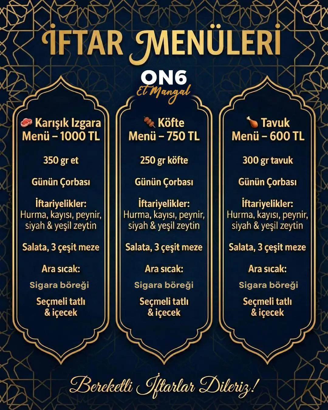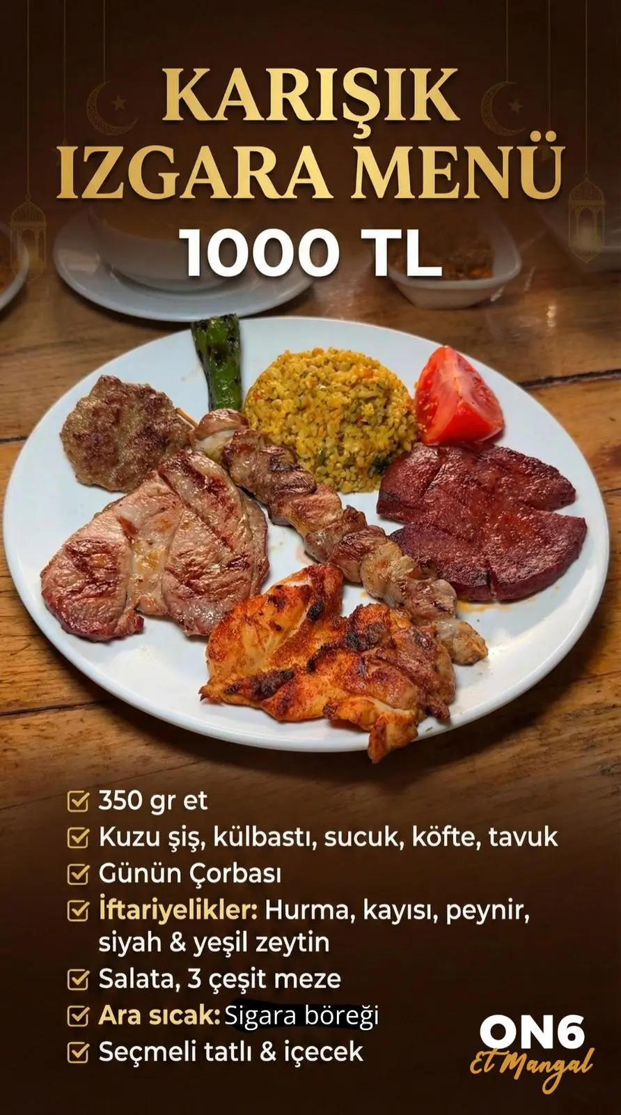 Nilüfer Misi’de On6 Et Mangal’da et mangal ve iftar menüsü deneyimi. Menü fiyatlarını inceleyin, doğada keyifli sofralar sizi bekliyor.